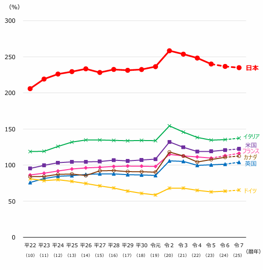 多額の政府長期債務残高を抱える日本。