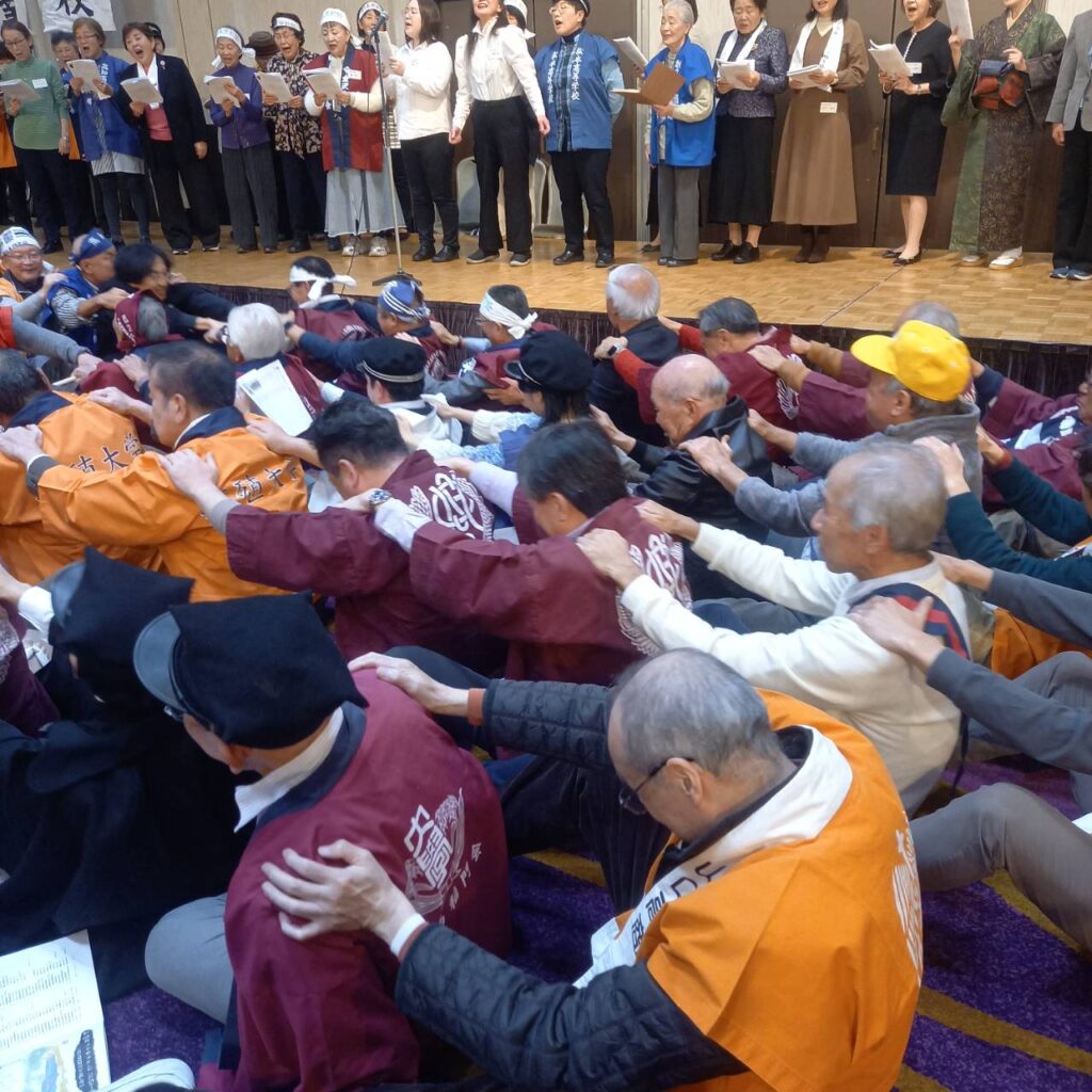 会の半場には恒例の琵琶湖周航の歌で会場が一体化。